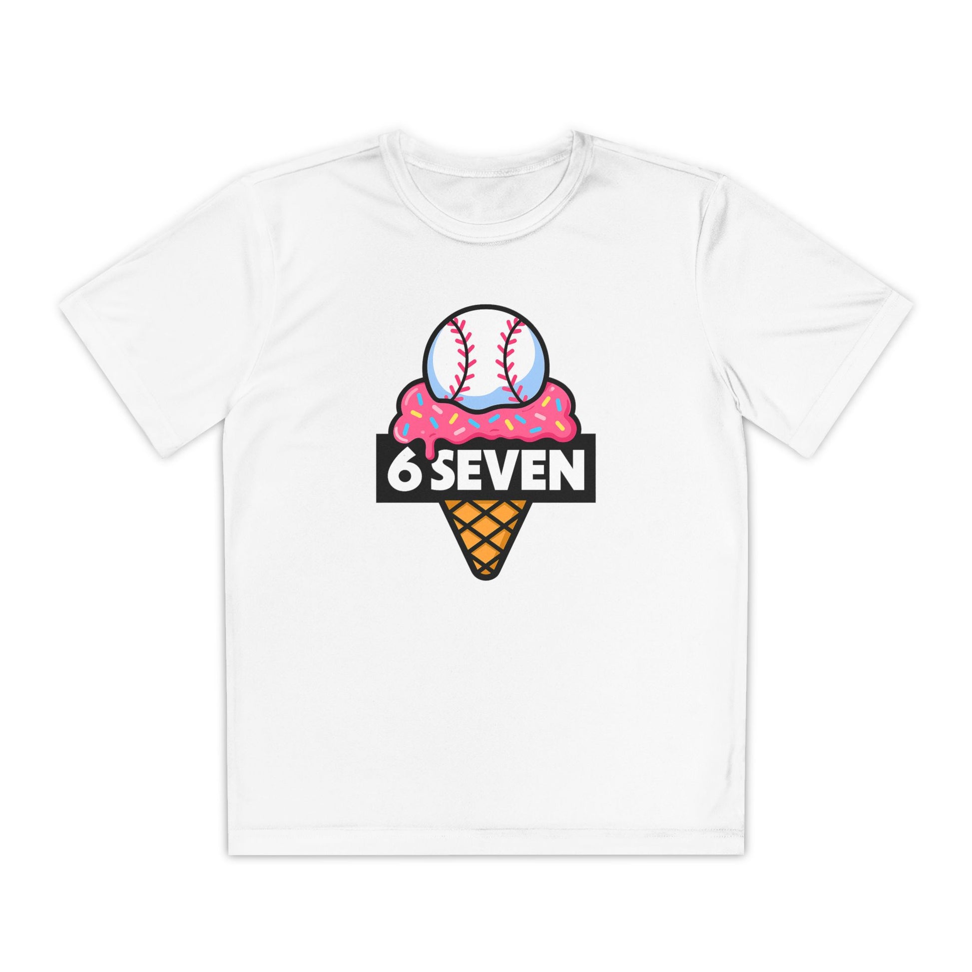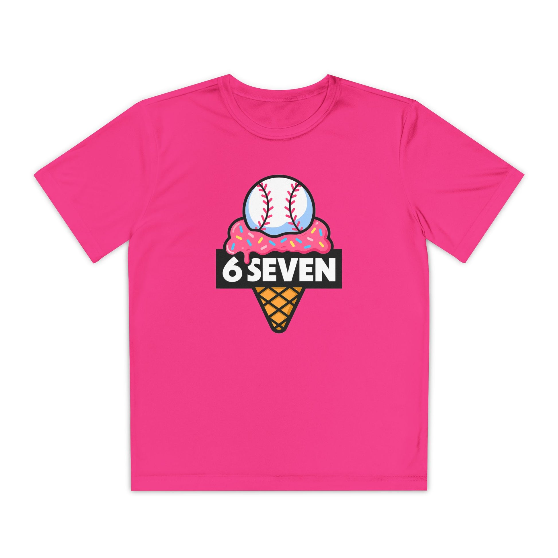 From TikTok to the team store—this one’s a whole vibe. The 6SEVEN Ice Cream Baseball Tee brings the heat and the drip, literally. Featuring the bold 6SEVEN logo reimagined with melty pink ice cream, rainbow sprinkles, and a baseball cone twist, this tee hits hard on and off the field.