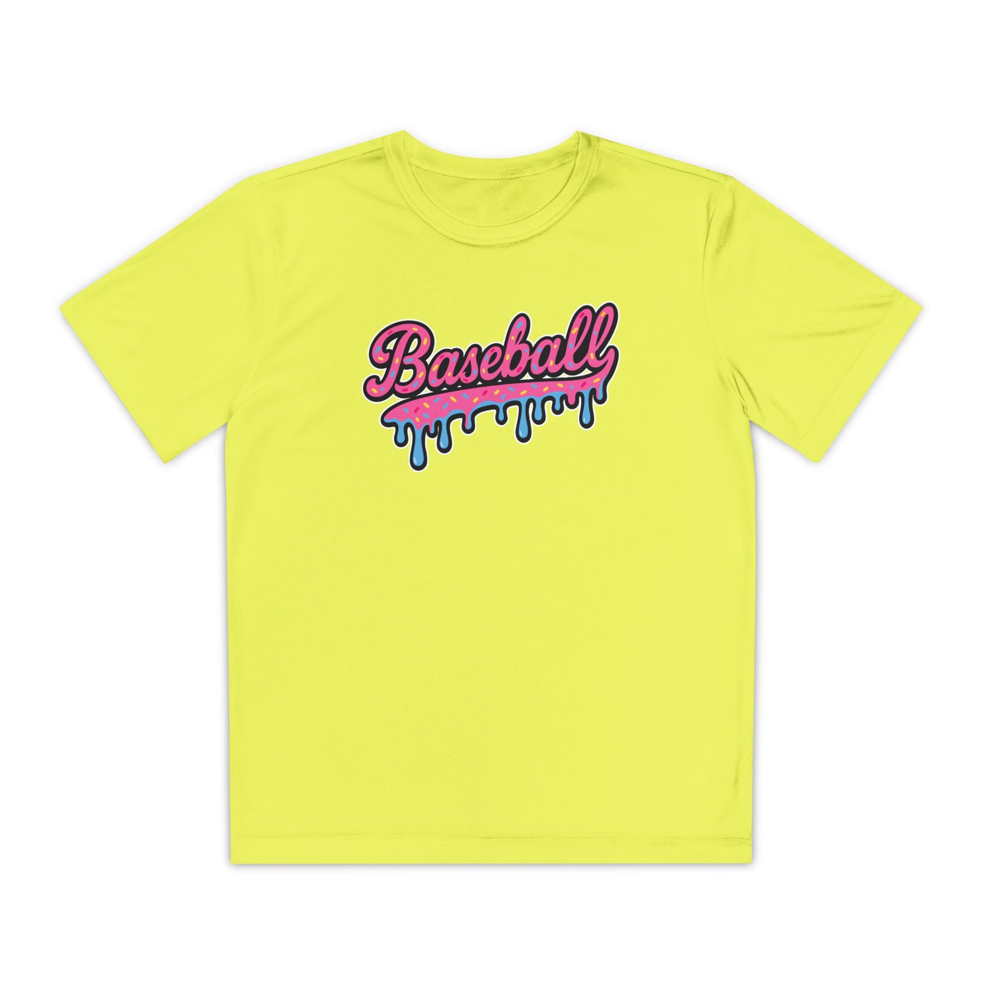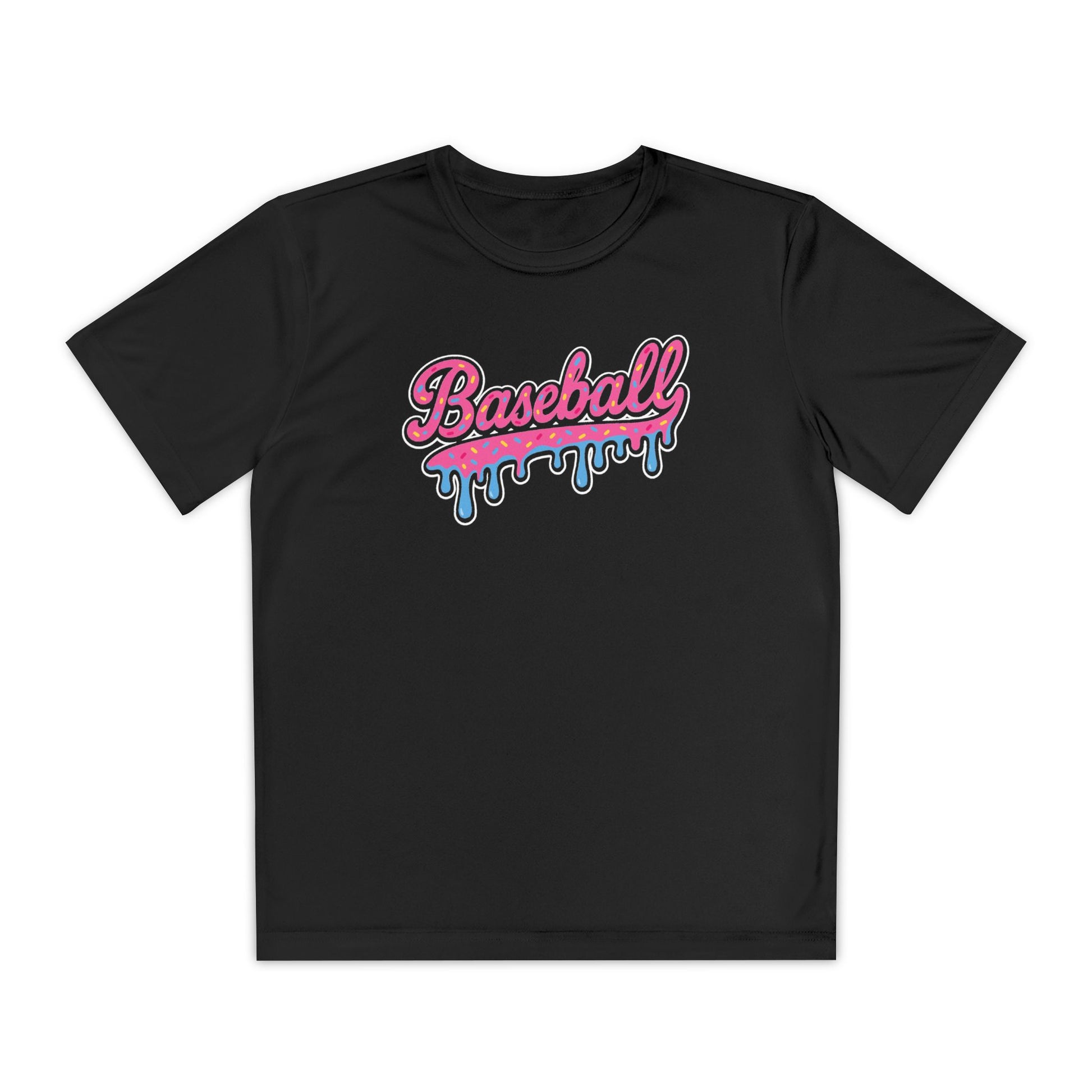 Scoop up some serious style with our Baseball Ice Cream Drippy Tee! This sweet design features the word “Baseball” in a playful script topped with melting frosting, sprinkles, and a candy-colored drip in pink and blue. Perfect for players, fans, and dreamers alike, this tee serves up flavor and fun all season long. Lightweight, breathable, and bold... it's a must have treat for your team swag lineup!