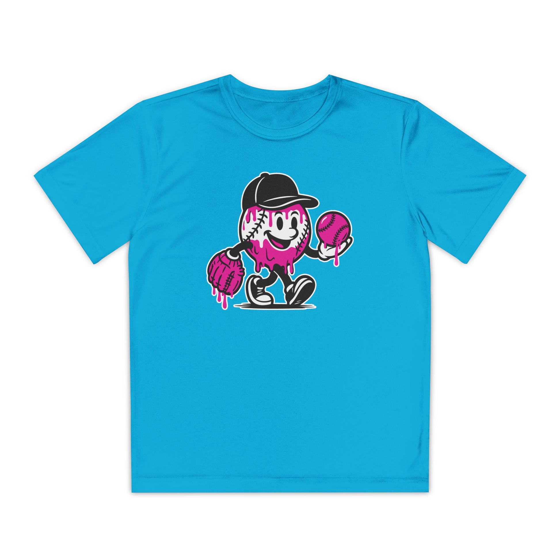 Bring the heat and drip with the Mr. Baseball Drippy Tee - where vintage swag meets bold streetwear. Featuring a custom illustrated "Mr. Baseball" character with oversized shades, baseball cap, and melty details, this tee is all about attitude and athletic edge. Printed on a premium, lightweight 100% polyester tee, it delivers all-day comfort whether you're on the field or flexing off it.